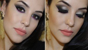 Maquiagem prata com toque de cor
