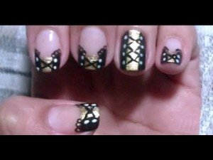 Unhas Decoradas com Corpete Manual Bela e Simples nail Art