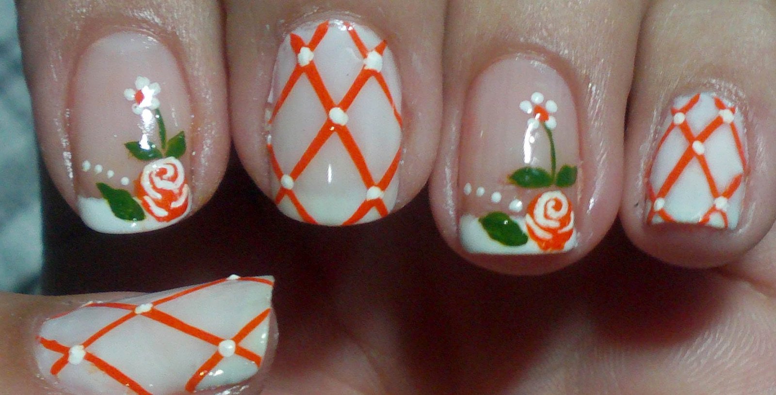 Unhas decoradas com Rosas Alaranjadas Manual Bela e Simples