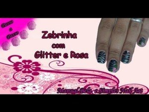 Unhas De Zebrinha com Glitter e Rosas Manual Bela e Simples