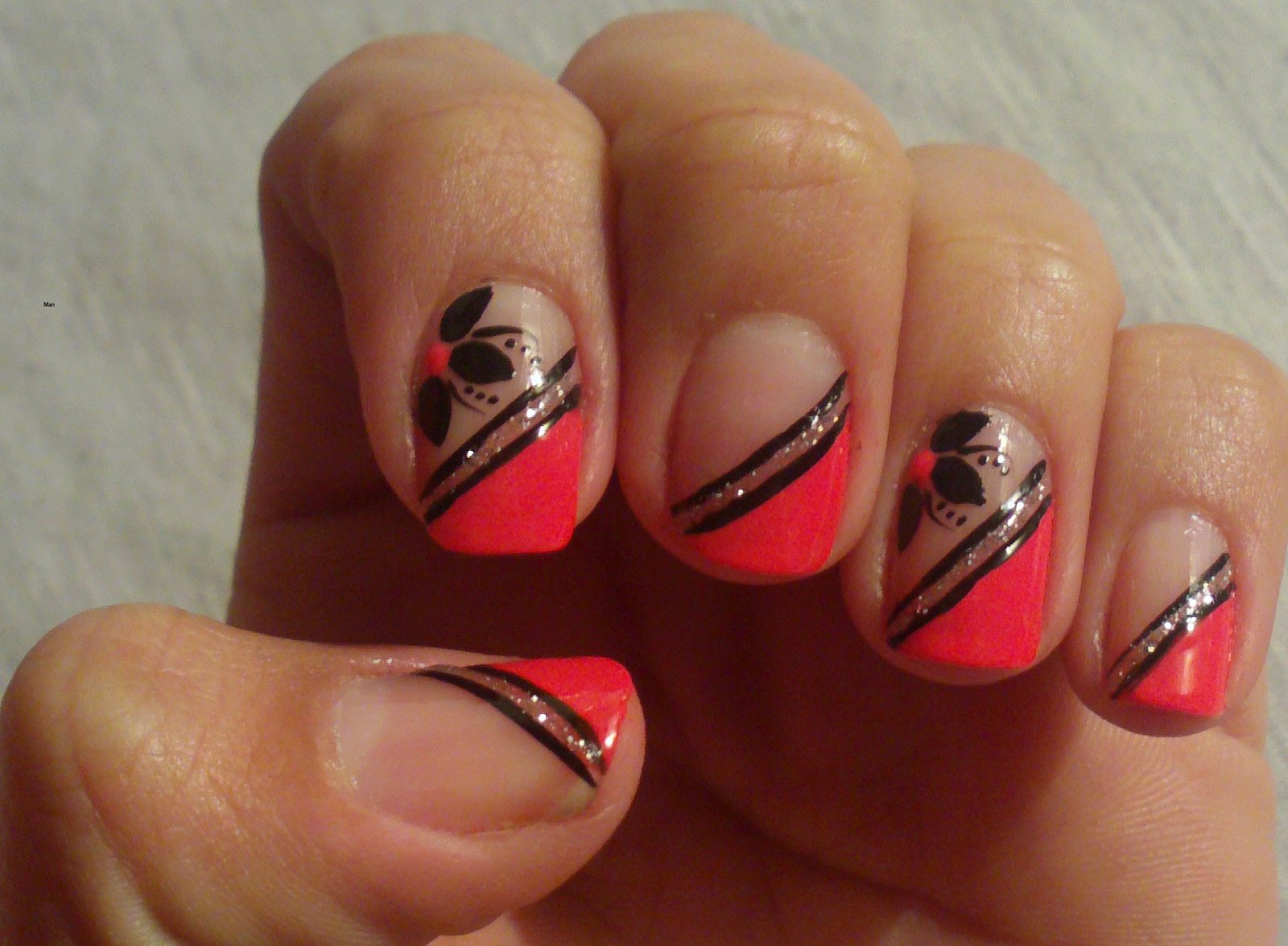 Unhas Decoradas Com Rosa e Preto Manual Bela e Simples Nail Art