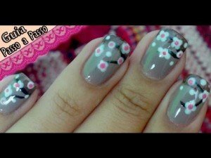 Unhas decoradas Marrom com Flores Manual Bela e Simples Nail Art