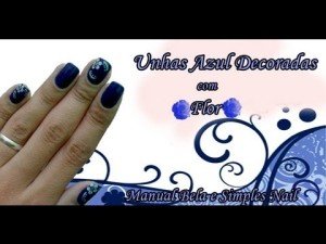 Unhas Azul Decoradas Manual Bela e Simples Nail Art