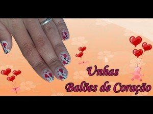 Unhas Balões de Coraçao Manual Bela e Simples Nail Art